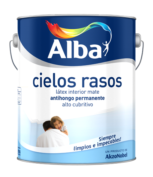 Látex para Cielos Rasos Interiores Mate. Fórmula especial que brinda una película firme pero de alta porosidad, ideal para el pintado de cielos rasos. Específicamente desarrollado para que su gran resistencia al crecimiento de hongos no se vea afectada por el paso del tiempo. De alto poder cubritivo, evita la condensación de agua y la consecuente formación de manchas en la superficie. Blanco, entonable con Tonalba hasta 7,5 cm3/litro.