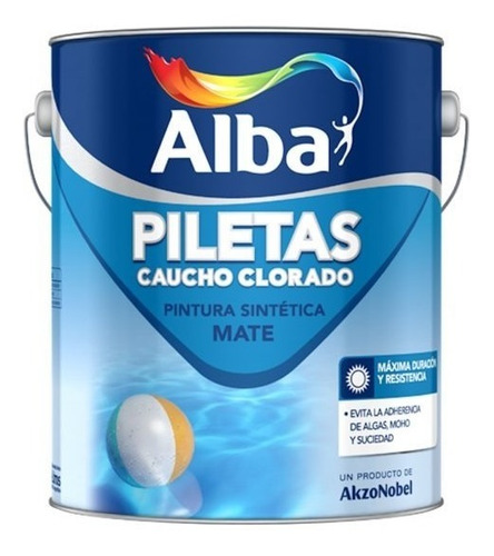 Alba Piscina es un látex para Piletas de Natación Mate. Formulación especial a base de polímeros acrílicos que le otorga a la película impermeabilidad, gran adherencia y flexibilidad.