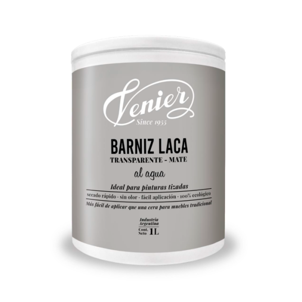 Barniz Laca al agua Chalk, es un protector acrílico de base acuoso, transparente mate. Le agrega protección a las superficies y alarga la duración del acabado a las pinturas tizadas y otro tipo de pinturas similares.