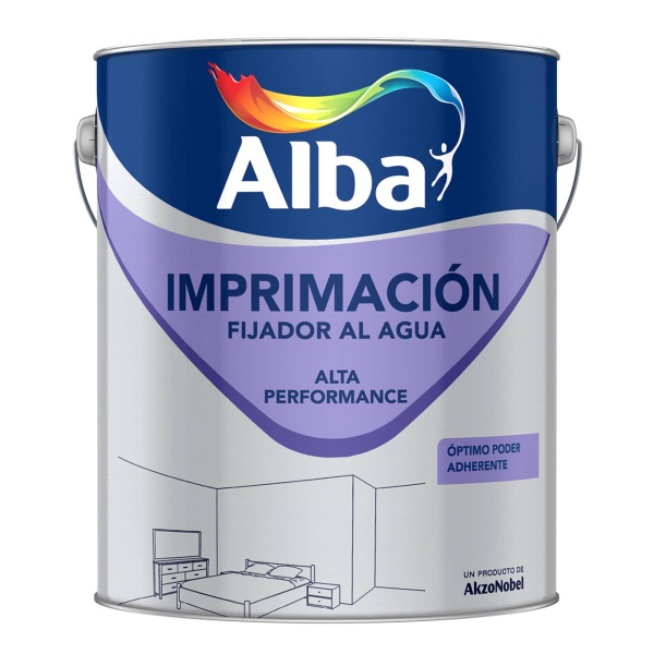 Imprimación Fijadora al Agua para Paredes Interiores Mate. Sella, fija y uniforma la absorción de las superficies. Facilita la aplicación de la pintura de terminación, mejorando la adherencia en zonas entizadas o sobre materiales poco firmes. Blanco, entonable con Tonalba hasta 7,5 cm3/litro.