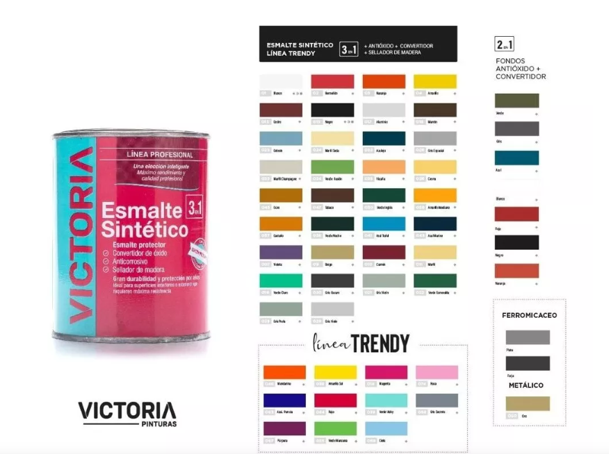 3 en 1: es un producto elaborado con tecnología capaz de inhibir y transformar el óxido, dando un acabado brillante y una excelente terminación. Nuestros colores poseen gran durabilidad y persistencia a lo largo del tiempo. Su formulación con resinas alquídicas de alta calidad le confieren gran adherencia en distintas superficies y resistencia UV.